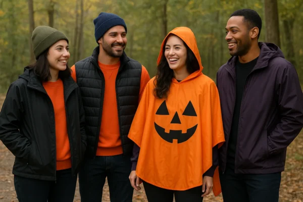 For those who want to combine function with fun, ponchos or capes are a perfect outer layer. They offer reliable rain protection while doubling as a playful part of your Halloween costume. Whether you’re camping with friends or taking kids trick-or-treating in the woods, these layers add a creative flair without compromising on practicality. Plus, they’re great conversation starters around the campfire!